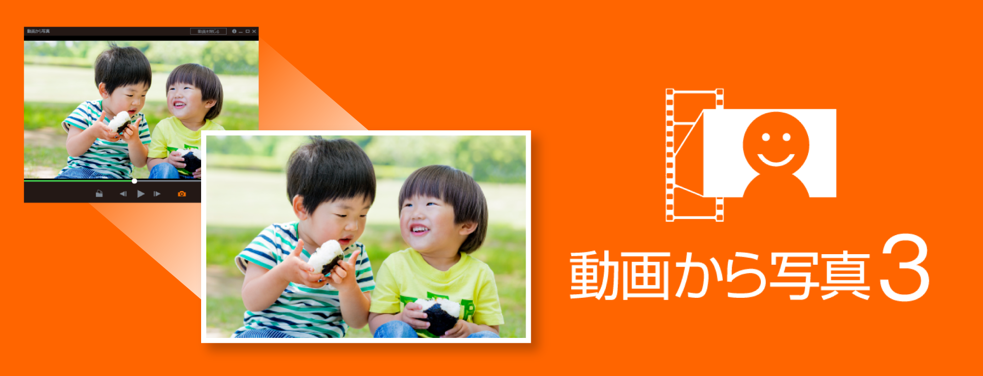 「動画から写真 3」は、動画からカンタンに写真を切り出せるソフトです。表情、シーン、ポーズなど、ベストショットを画像で残せます。
