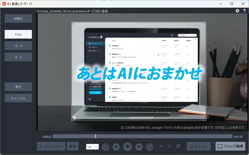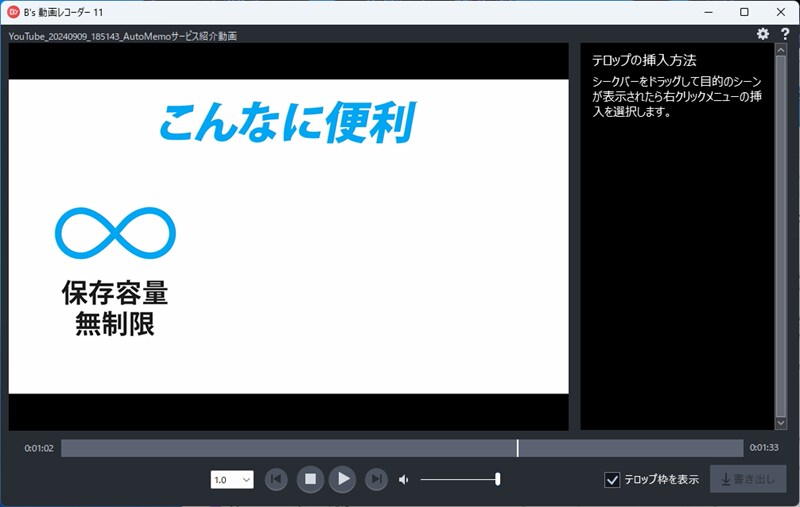 動画にテロップを追加できます。 ※動画編集が出来るのは本製品で録画したファイルのみです。
