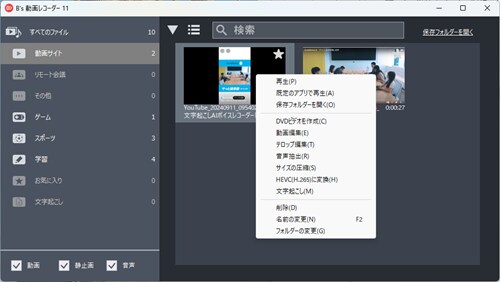 動画からサウンドを抽出する方法を説明します。 ※音声抽出ができるのは本製品で録画したファイルのみです。