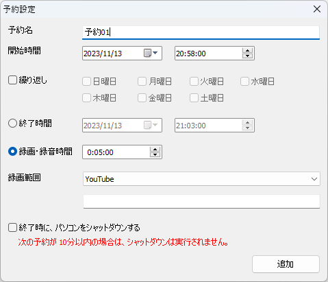 録画停止のショートカット: 録画停止ボタンを押さなくてもキーボードから停止できます。Sift,Ctrl,AltとF7~F12の任意の組み合わせが可能です。