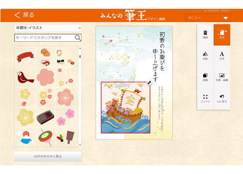 ※白紙を選ぶ場合は、検索窓の上にある白紙をタップしてください ※右上の大きく表示をクリックするとデザインを拡大表示します