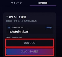 ・入力したアドレス宛に認証コードが記載されたメールが届くので、そのコードを入力して [アカウントを確認] をクリックします。