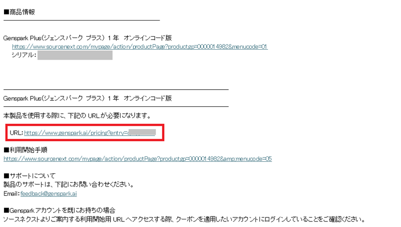 ※利用開始用URLは購入時にお送りしたメール「件名:[ソースネクスト・サイト]ご注文ありがとうございます」に記載されている、