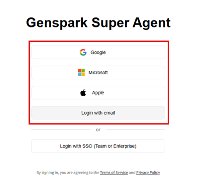 2.新たにGenspark用アカウントを作成する場合は[Login with email]をクリックします。
