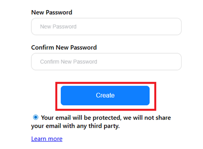7.設定するパスワードを確認用も含めて入力後、[Create]をクリックします。