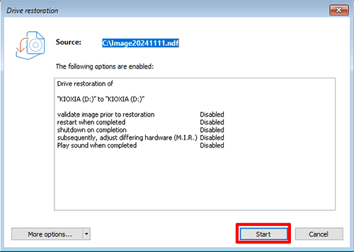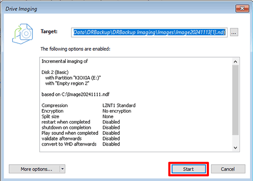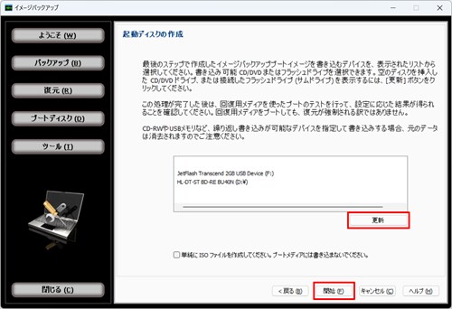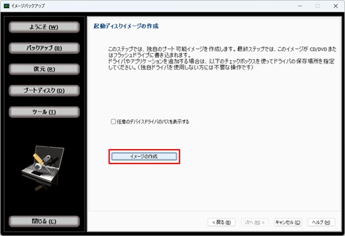 起動ディスクはドライブバックアップの復元時や、OSの障害によって起動不可能になった時に、このディスクから起動し、復元できるようにするためのものです。万が一の時のために必ず作成するようにしてください。