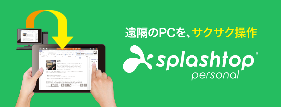 Splashtop(スプラッシュトップ)は、スマホやタブレットからパソコン(Windows/Mac)を遠隔操作できる、リモートデスクトップサービスです。もちろんパソコンでパソコンも操作できます。