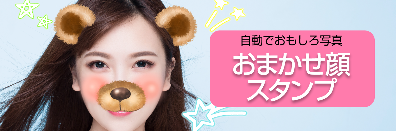 「おまかせ顔スタンプ」は、顔写真を多彩なスタンプでおもしろく加工できるソフトです。