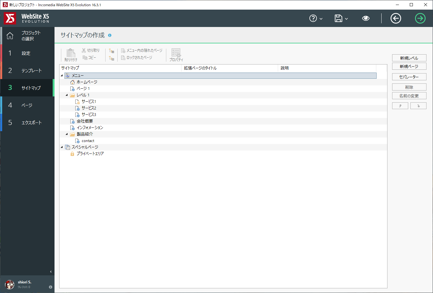 作成したWebサイトをパソコン上に保存することや、プロジェクトファイルとしてバックアップもできます。