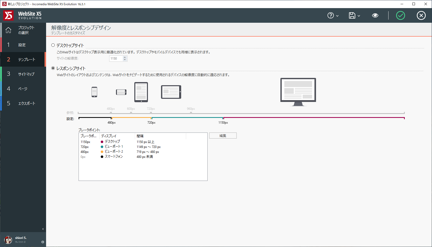WebSite X5 EVOLUTIONでは、レスポンシブサイトのブレークポイント調整もできます。
