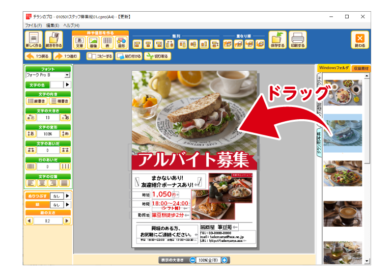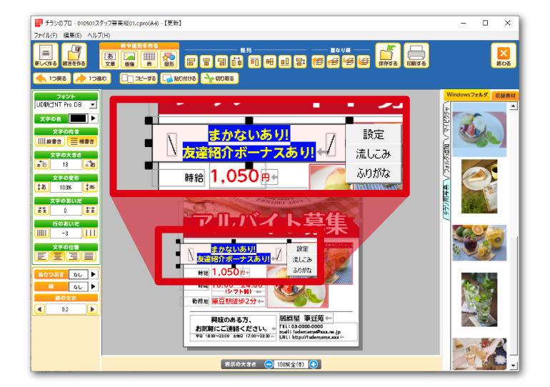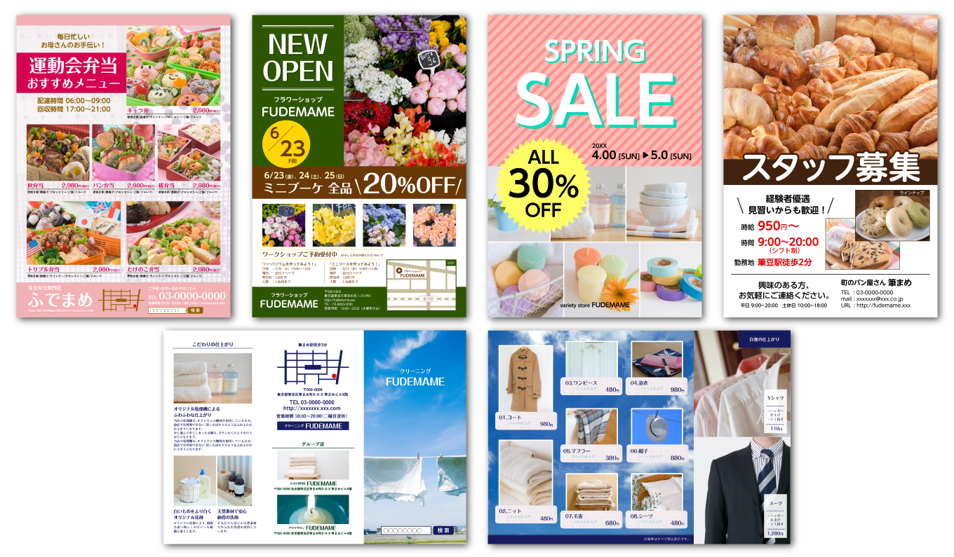「チラシのプロ」はテンプレートを選んで、文字と写真を差し替えるだけで、プロがデザインしたようなチラシ・POPが作れるソフトです。