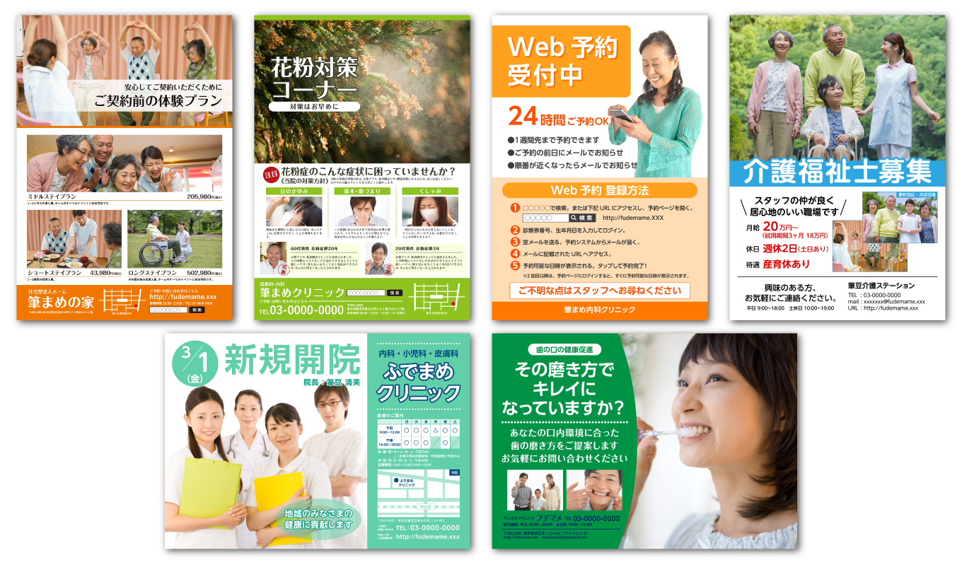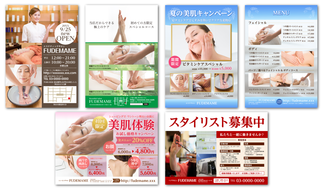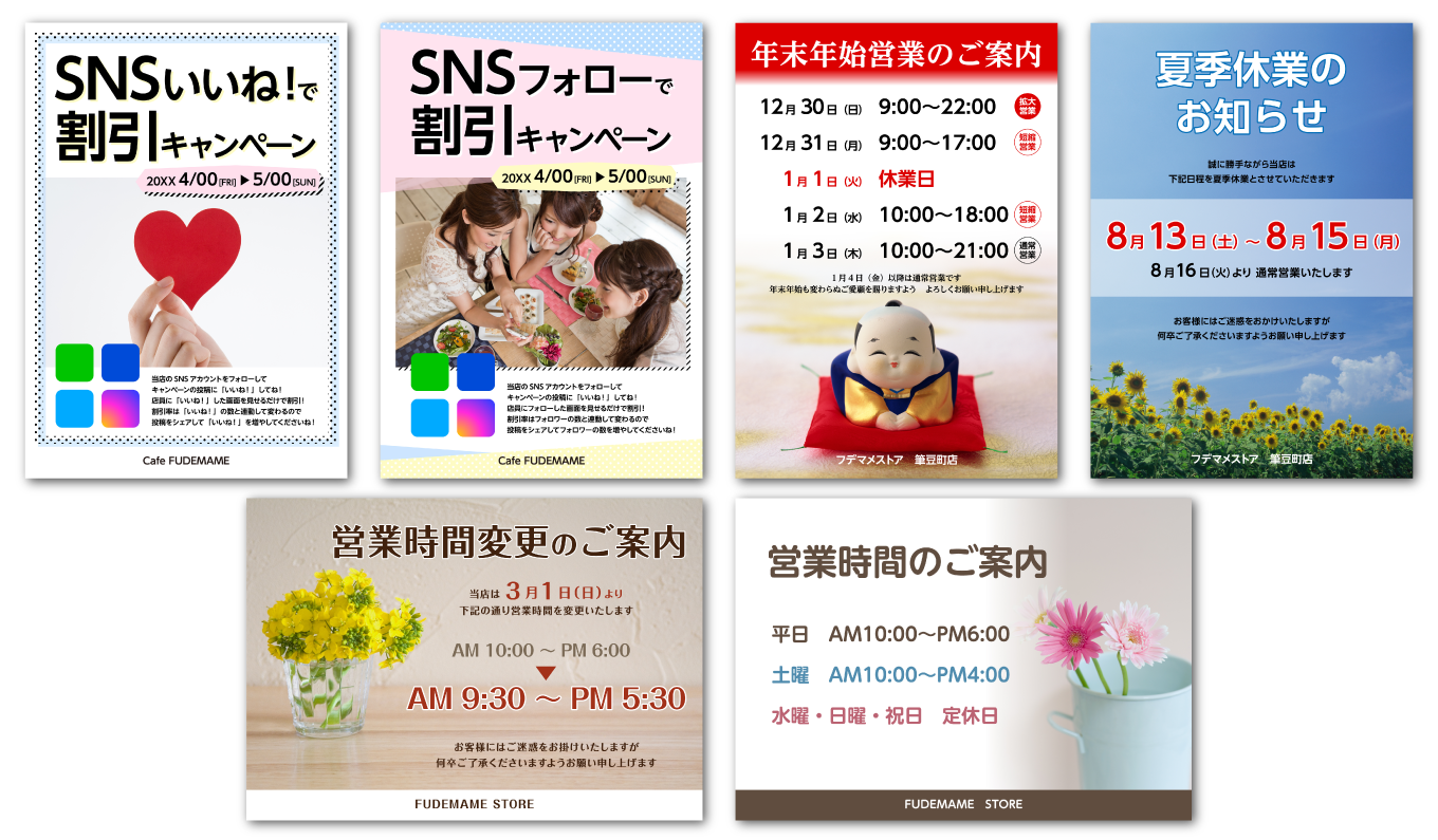 プロのデザイナーが作成した、さまざまな業種、用途に合わせたテンプレートを105点収録しています。