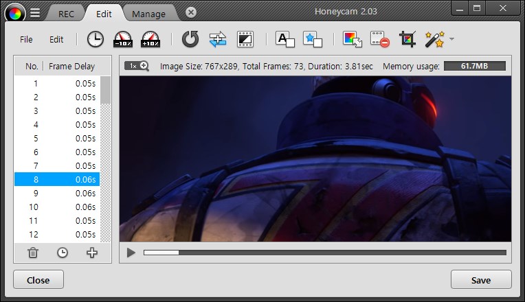 「Honeycam(ハニーカム)」は、高画質GIFアニメーション作成ソフトです。