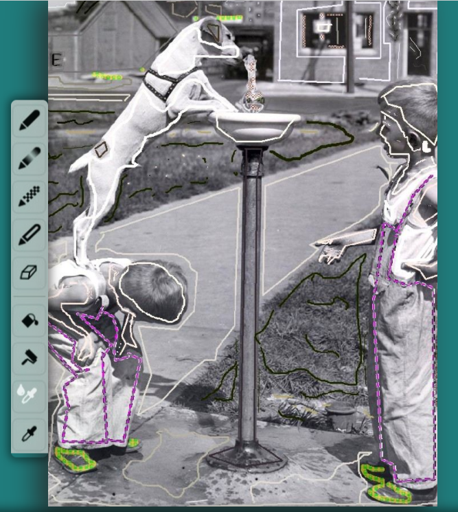 線や点を描くだけで写真全体や一部分に着色できます。