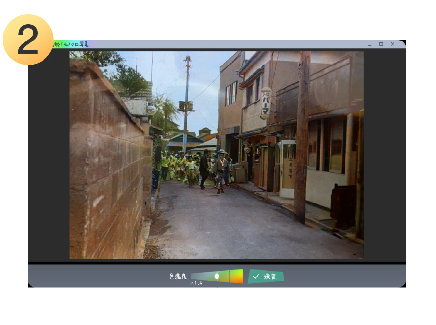 AIが学習したデータを元にモノクロ写真を解析。 人や空、森林、海などを認識して1クリックで自動的に着彩します。