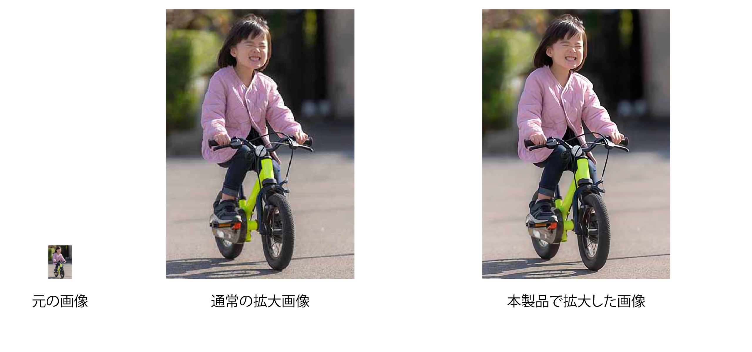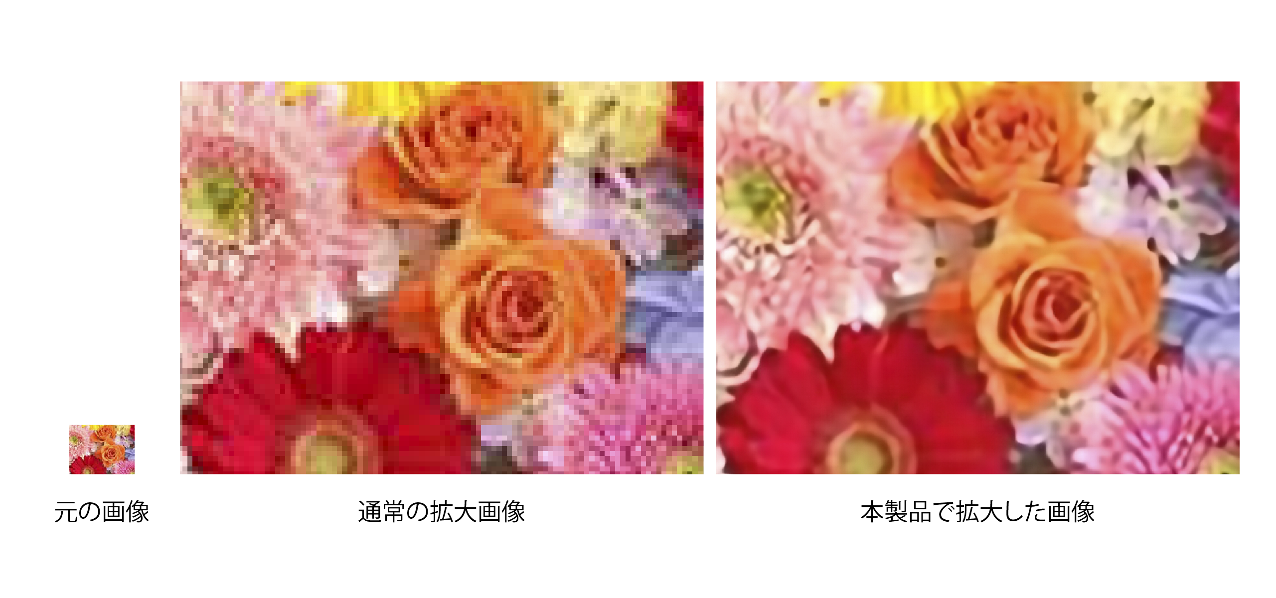 AIが画像を拡大する際にアップスケール(解像度を上げる)し、さらにJPEG形式で発生するノイズを除去して、鮮明な画像に仕上げます。