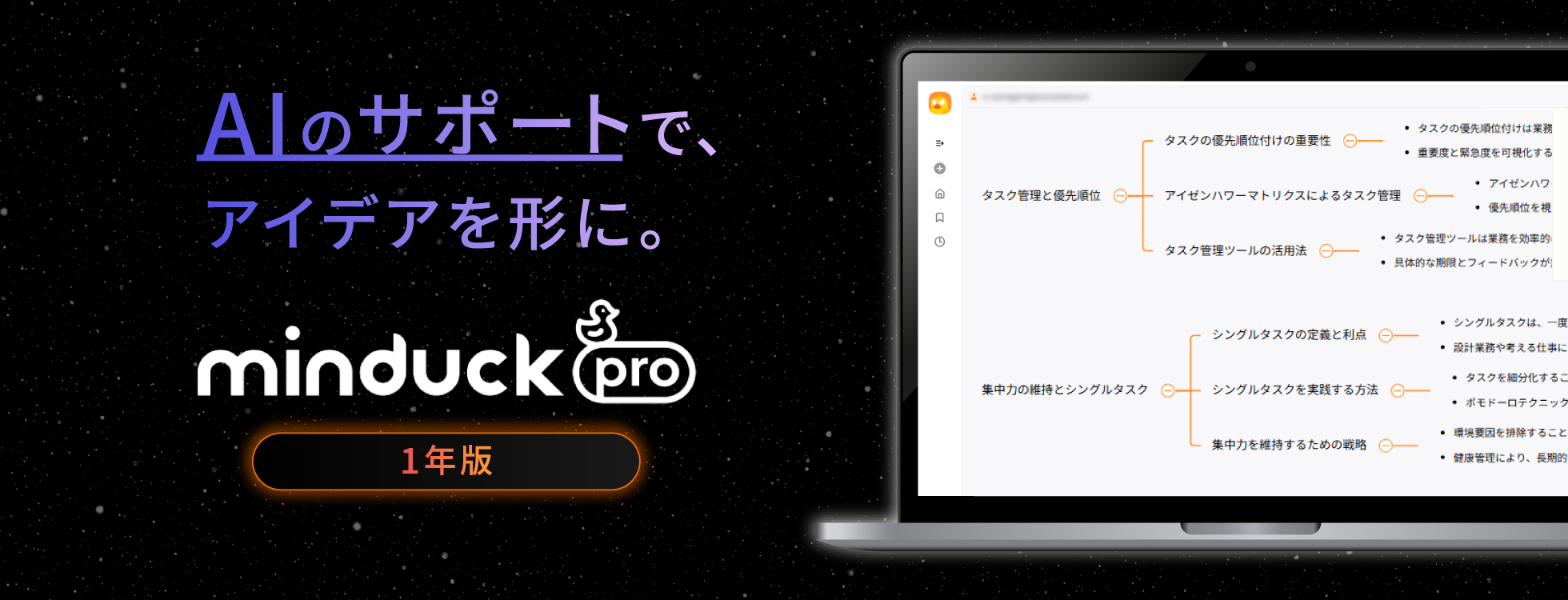 本製品を購入いただくと「Minduck Pro」を1年間利用できます。