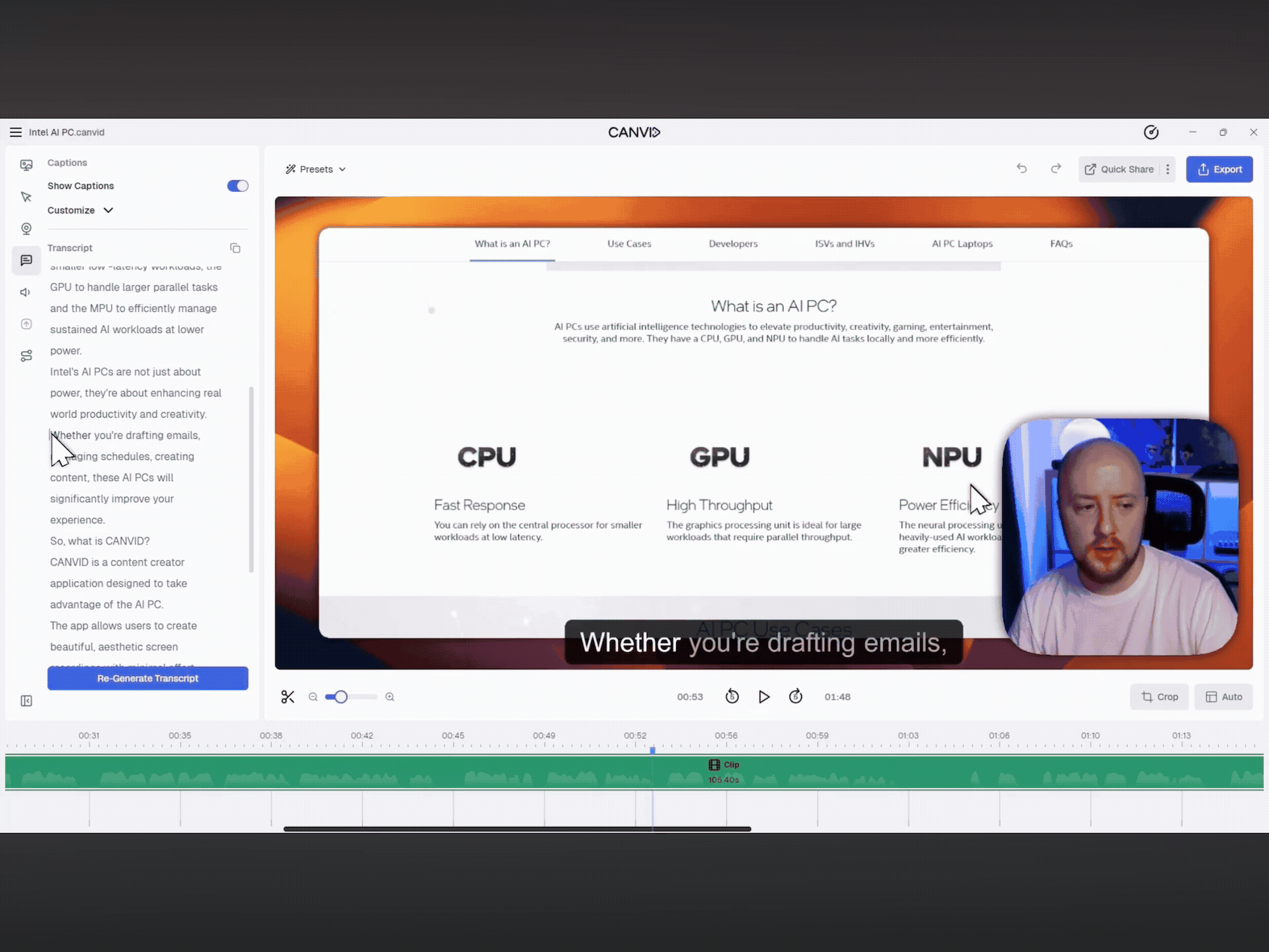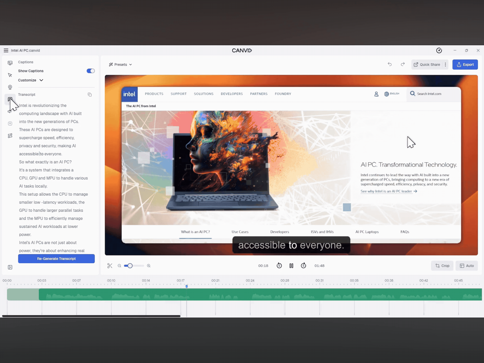 生成されたトランスクリプトは、検索、コピー、エクスポート、さらに編集もできます。