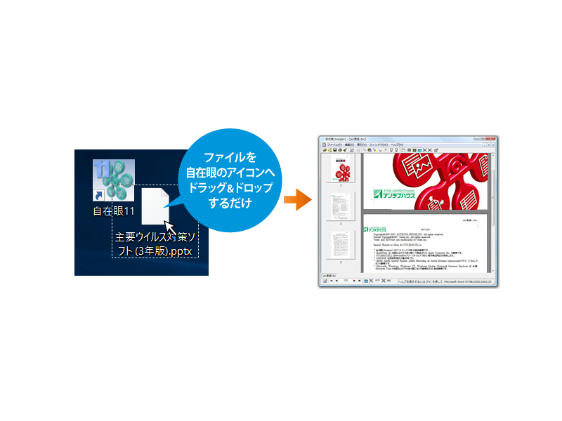| ワード | ・文書内容の表示・印刷 ・文字列検索機能 ・画像保存機能 ・範囲選択とクリップボードへのコピー |