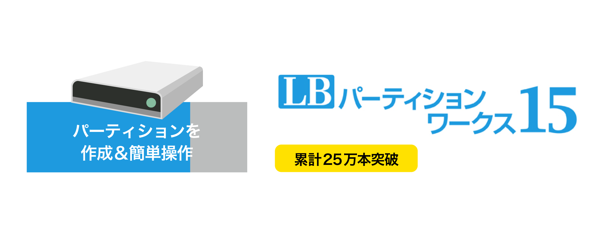「LB パーティションワークス15」はパーティションを作成するソフトです。データを削除せずにCドライブとDドライブの比率を変更したり、パーティションのサイズ変更や結合、移動が行えます。ほとんどの操作は、ウィザードに沿って簡単に実行することができます。パーティション操作は難しいと思っている方や初めての方でも、図解中心の「利用ガイド」がもれなく付いているので安心して使用できます。