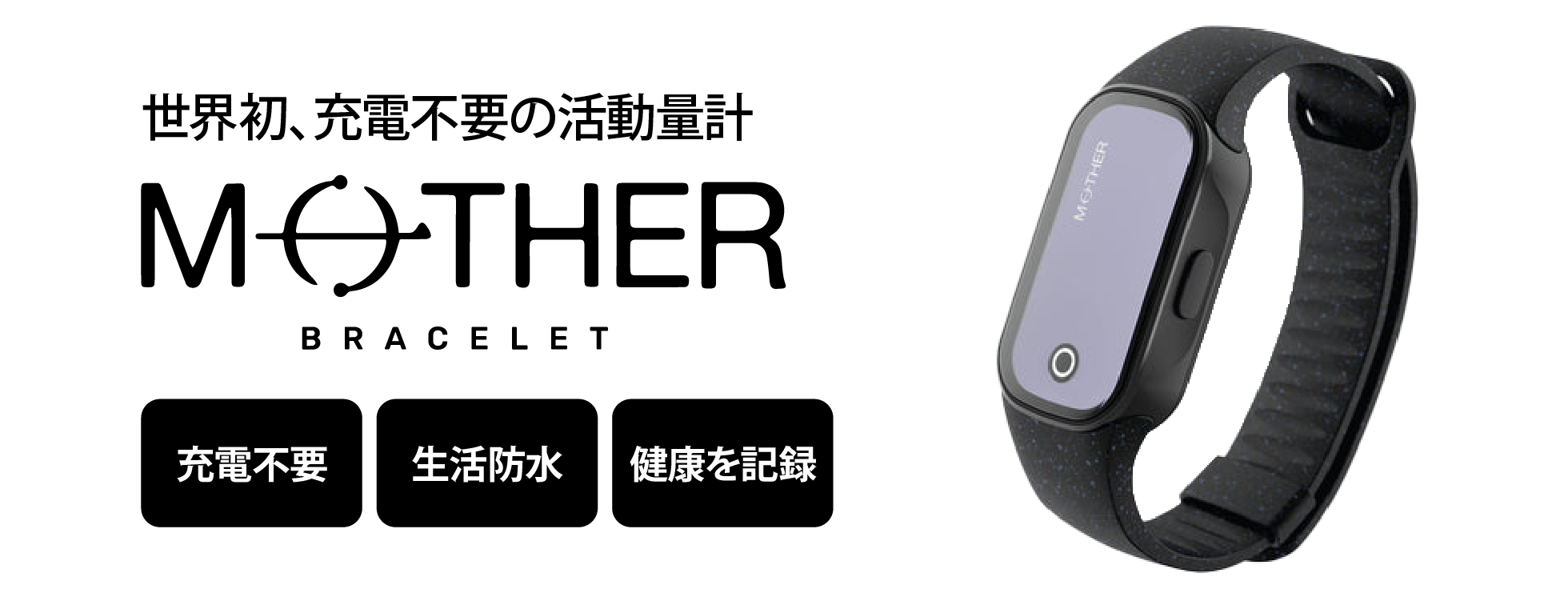 「MOTHER Bracelet」は、この充電によるダウンタイムが生む空白の時間を克服し、24時間の健康管理を実現しました。