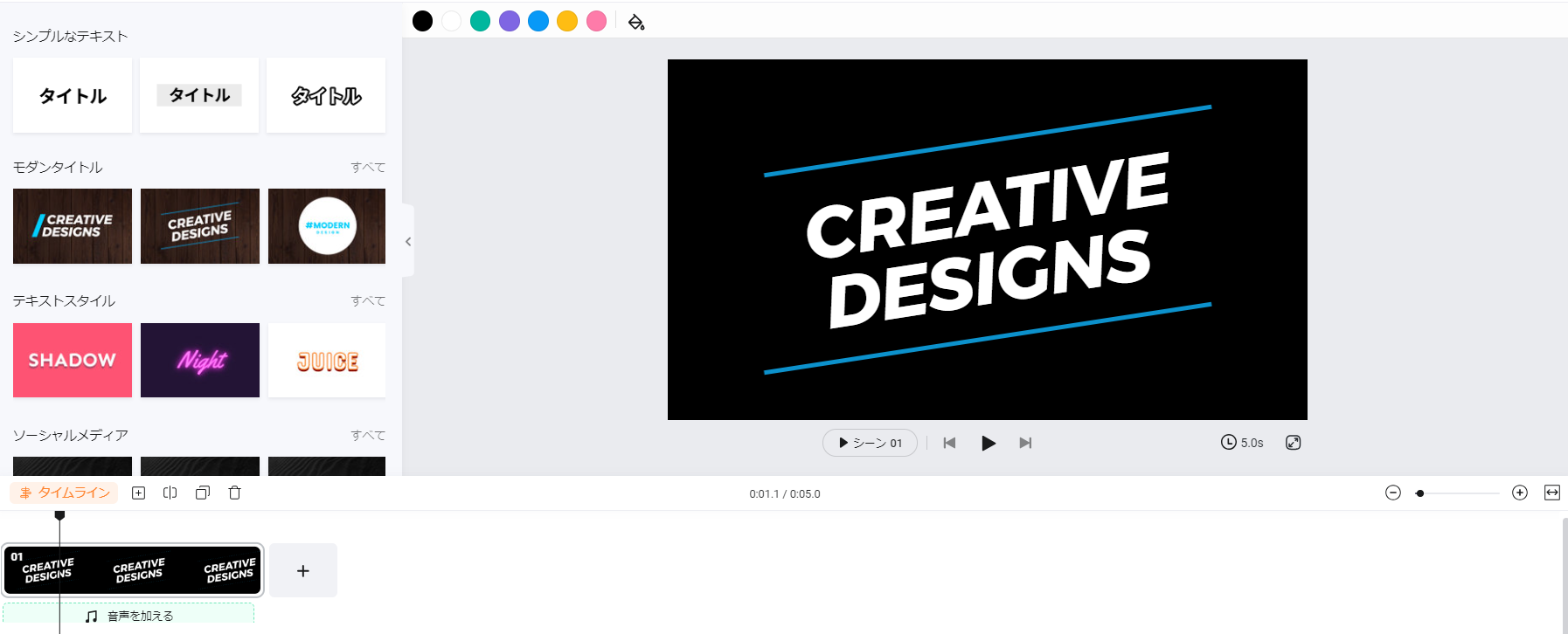 テンプレート、テキスト、音楽、ナレーションを追加して、自由にカスタマイズします。