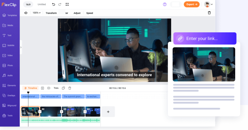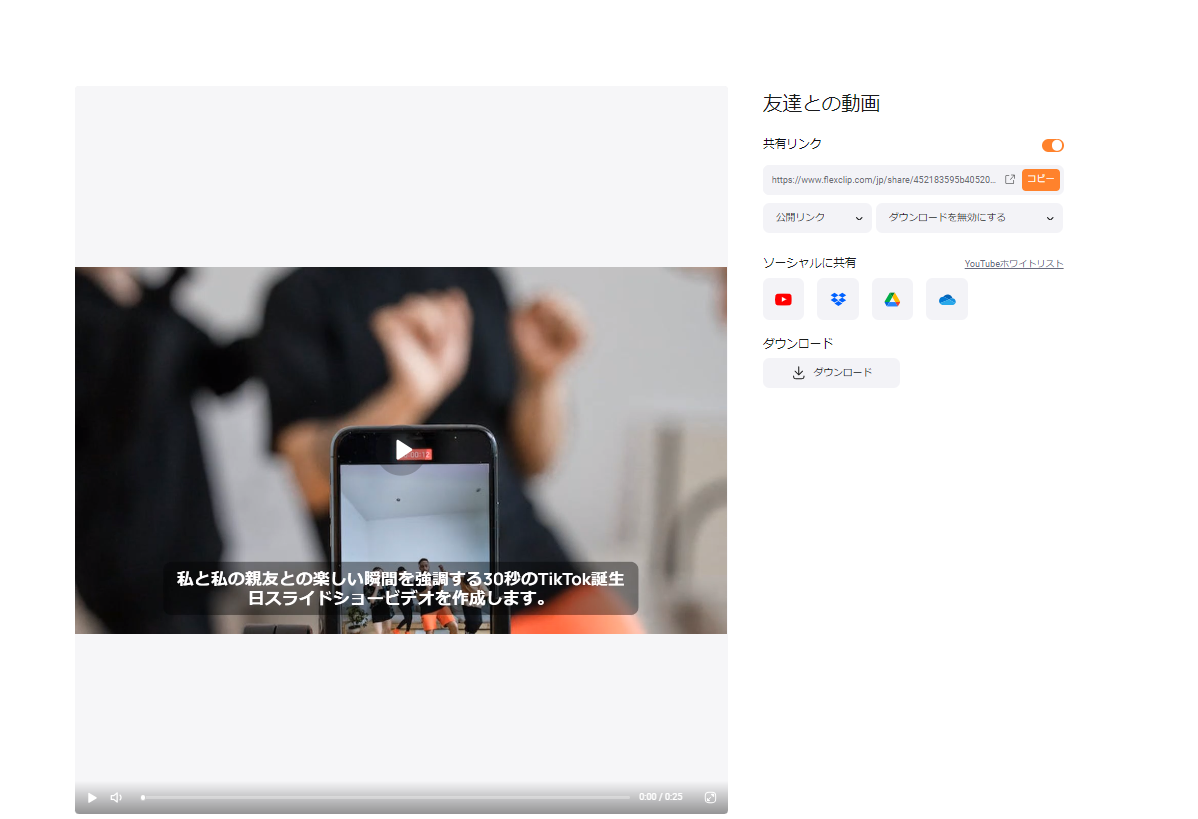 「FlexClip(フレックスクリップ)」は、オンライン動画編集サービスです。ビジネスのプレゼンテーションからソーシャルメディア用のコンテンツまで、誰もが手軽にプロ仕様の動画を制作できる新しい時代のツールです。