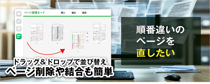 スキャンした教材、順番ぐちゃぐちゃだったんですけど、並び替えや回転がドラッグだけでできるのがすごく便利。印刷前のチェックも楽になりました。(50代 女性)