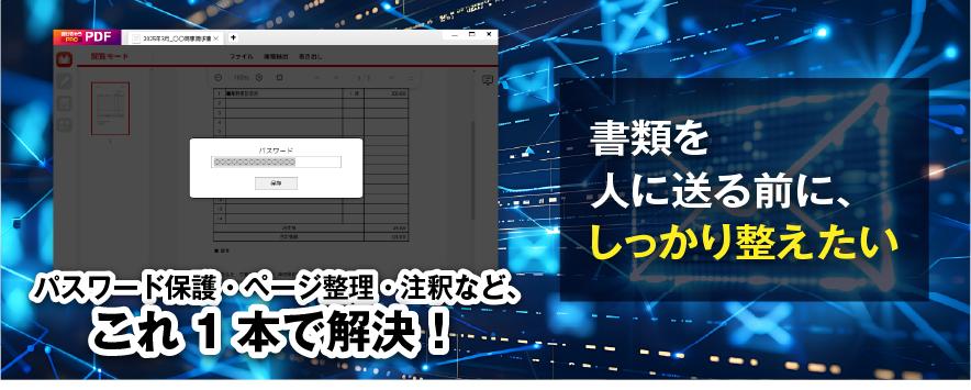 PDFファイルにパスワードを設定し、閲覧・印刷・編集などの操作を制限できます。