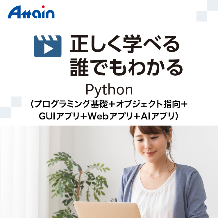 Pythonは、アプリケーションの開発やAI(人工知能)の研究などさまざまな目的で多方面で使われているプログラミング言語です。本製品には、「誰でもわかる Python」シリーズのうち、「基礎」「オブジェクト指向」「GUIアプリ」「Webアプリ 」「AIアプリ(機械学習)」の5つの教材が収録され、ゼロからPythonの基本を習得できます。