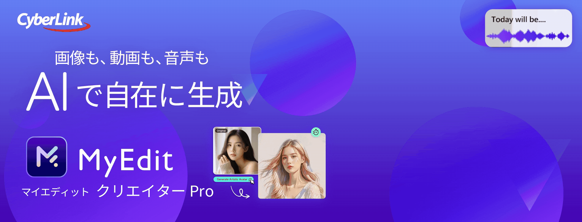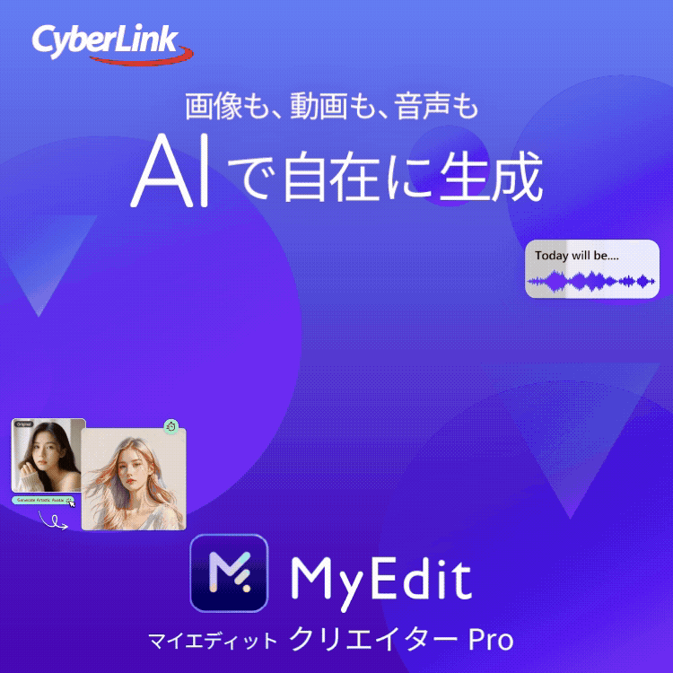 「MyEdit(マイエディット)」は、動画編集の分野で実績のあるサイバーリンク社の、AI画像・動画編集ツールです。