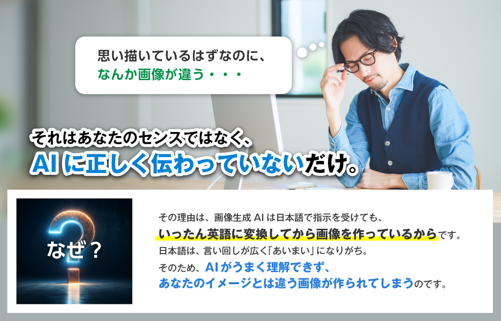 ただし、日本語だけのシンプルな指示では、思い通りの画像を作れないことがあります。