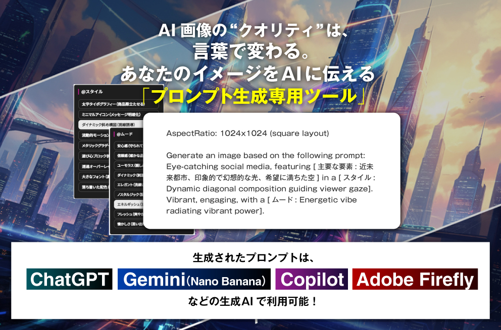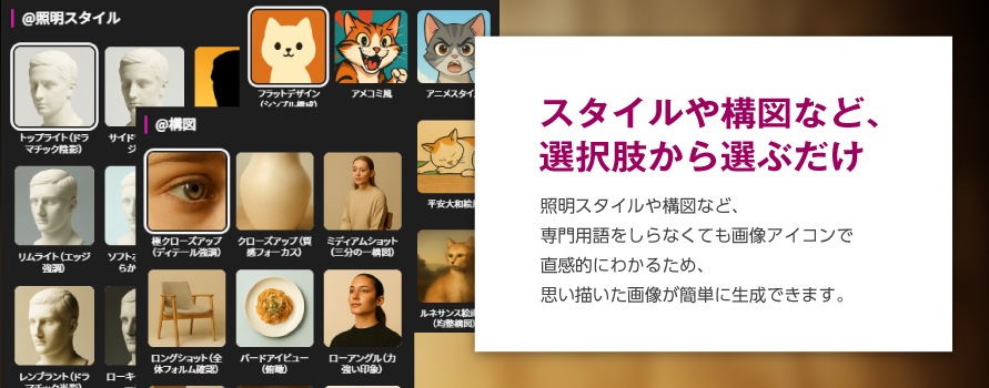 「ChaChatAIイメージナビゲーター」を使えば、意図どおりの高品質な画像を作るためのプロンプトを簡単に作成できます。
