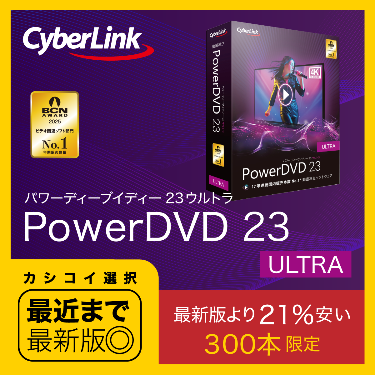 「PowerDVD 23 Ultra」は、AIボーカル除去やGPU超解像テクノロジーを搭載し、Proエディションの全機能に加えて、8K動画再生、HDR10再生、H.265動画再生、さらに100GBのクラウドストレージなどの先進機能を備えた最上位エディションです。