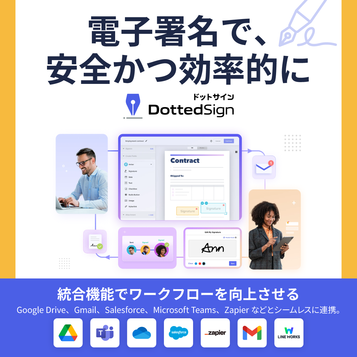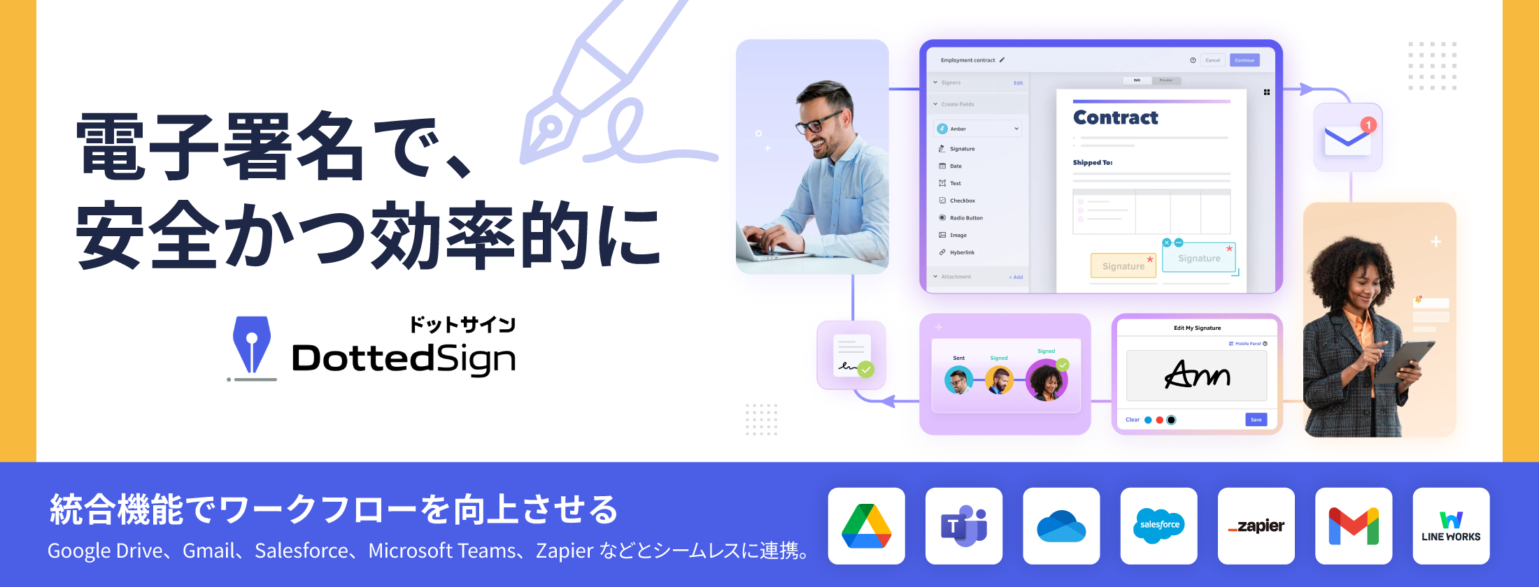 「DottedSign(ドットサイン)」素早く安全な法的拘束力のある電子署名サービスです。
