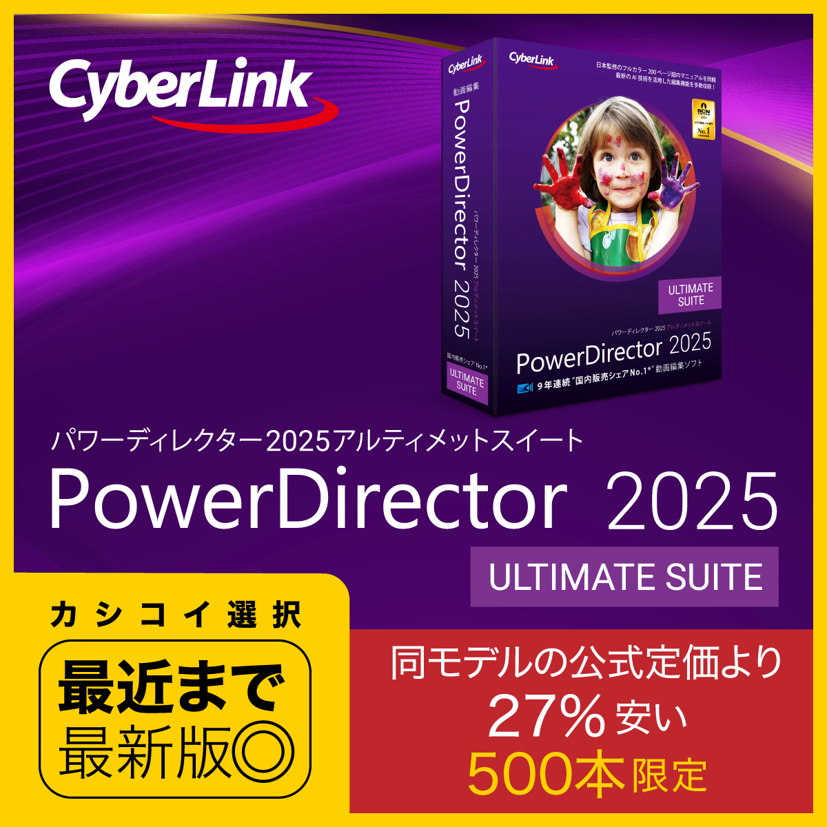 「PowerDirector」シリーズは、サイバーリンク社の10年連続国内シェアNo.1の動画編集ソフト(BCN AWARD 2016 ~ 2025 ビデオ関連ソフト部門 最優秀賞)。 「PowerDirector 2025 Ultimate Suite」は1つ前のバージョンで、高度な動画編集を気軽に始められるようソースネクストが手軽な価格でお届けするものです。本製品は同時提供している「PowerDirector 2025Ultra」に動画の色彩編集と音声編集ソフトが追加されたスイート製品です。