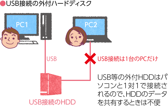 NASなら複数のパソコンから同時に接続したり、外出先からデータにアクセスできます。