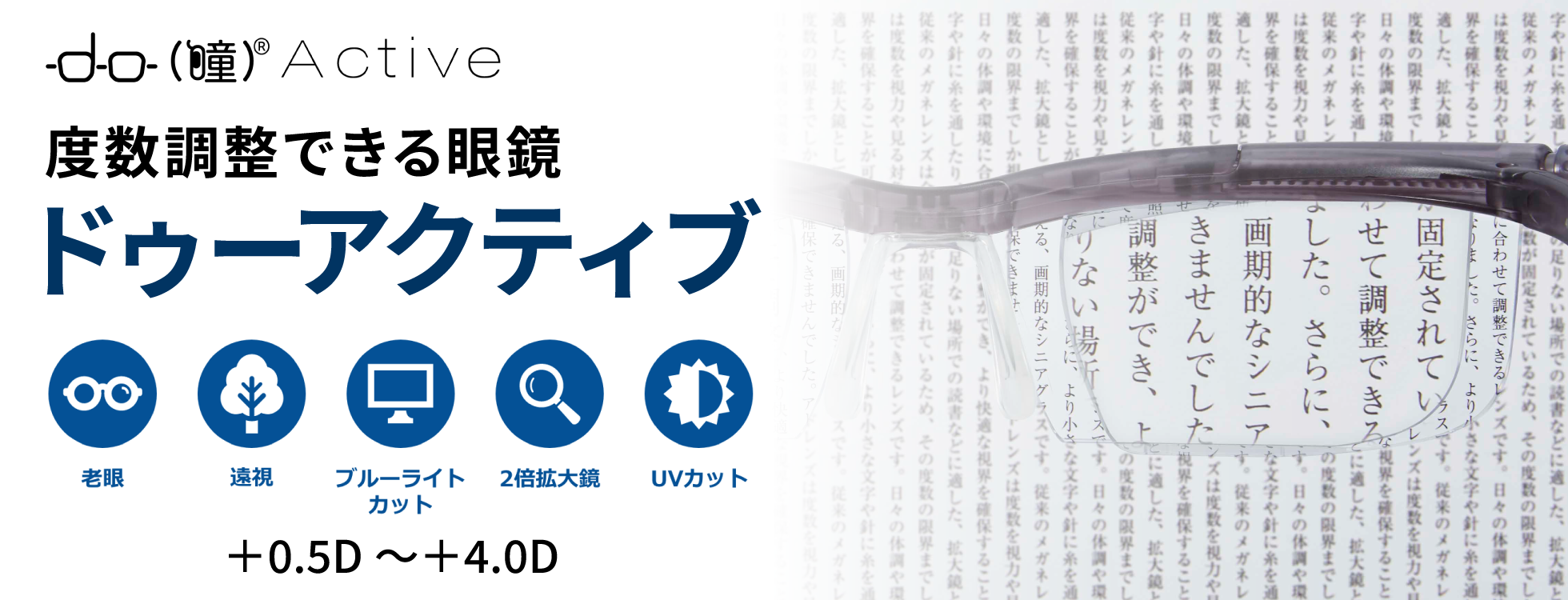 | 補正度数 | +0.5D ~ +4.0D ( 遠視・老眼 ) の度数の幅内で調整可能 |