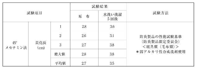 ・日本防炎協会の試験方法に遵守して試験を実施し、難燃性の効果が見受けられました。