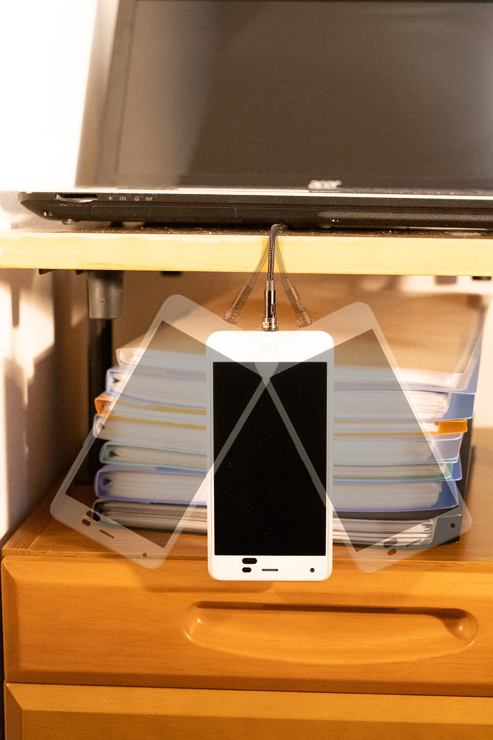 ケーブルにひっかかり、机から落下したり中で端子が折れたりなどがありません。