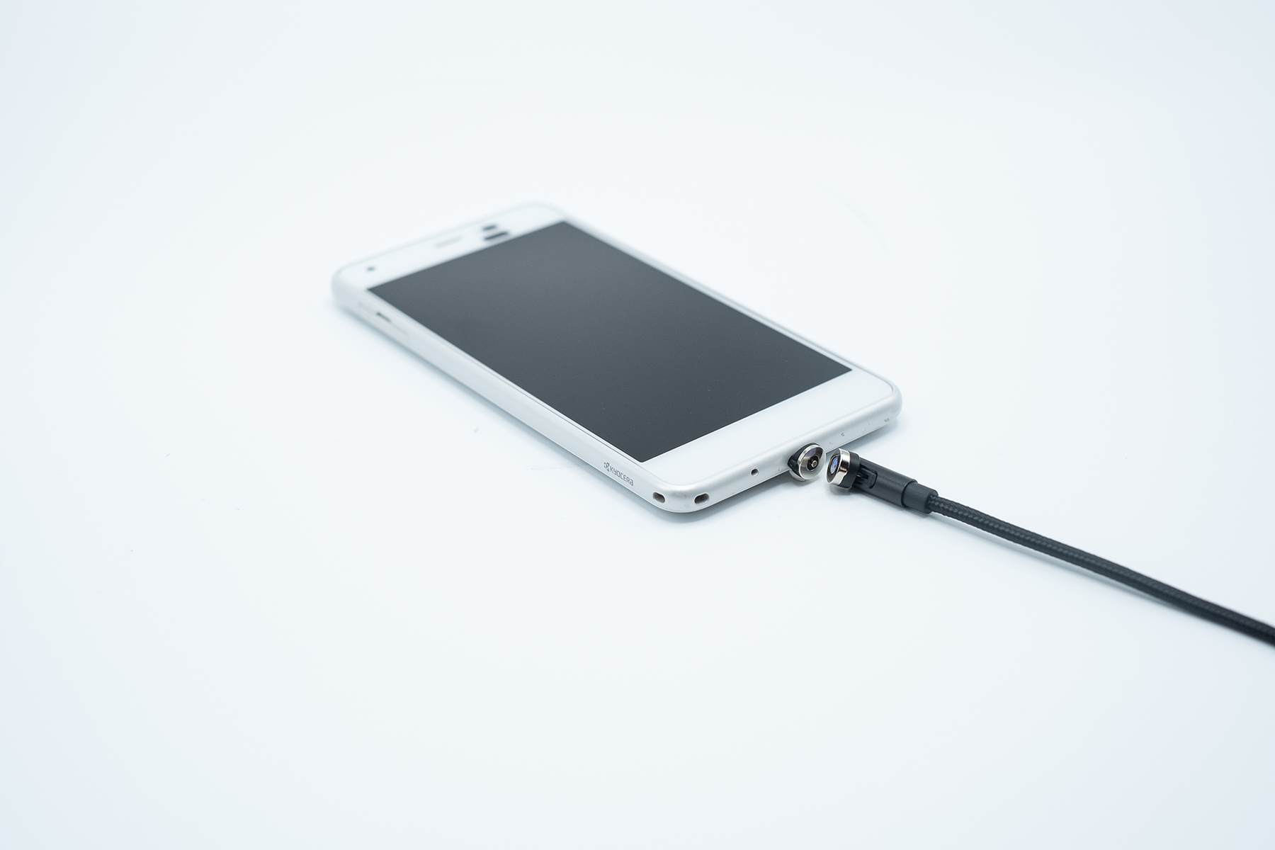 マグネット接触部が360度回転するので、接続方向が自由自在で、ケーブルに負荷がかかりにくい作りです。