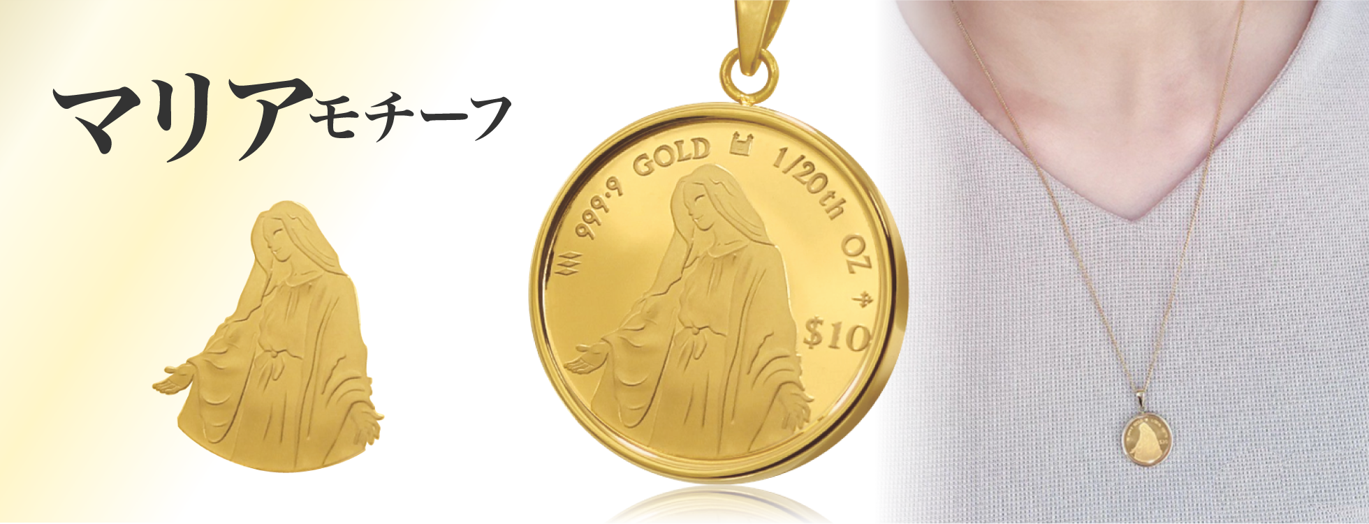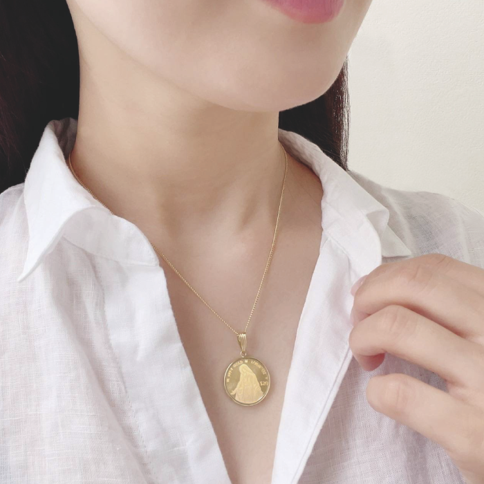 世界中の人に愛され、親しまれているマリアをモチーフにしたコインが出来ました。イエスキリストの聖なる母「マリア」は古来よりとても人気があり、マリアを身につけ祈りを捧げることで数々の奇跡が起こるという言い伝えがあり、お守りとして愛用されてきました。 また最近では、性別・世代・宗教を問わずファッションの一部として気軽に身につけられるようになりました。