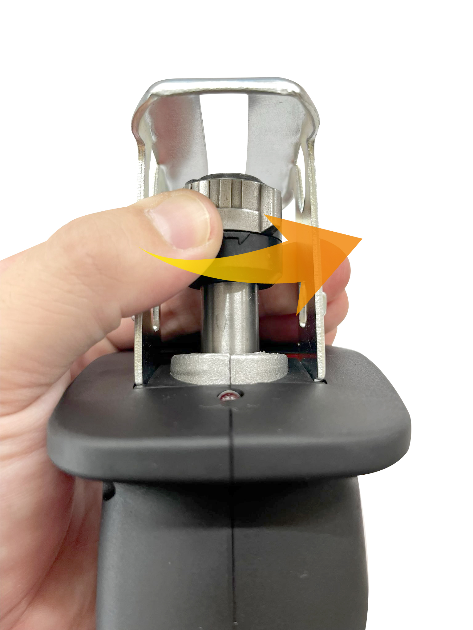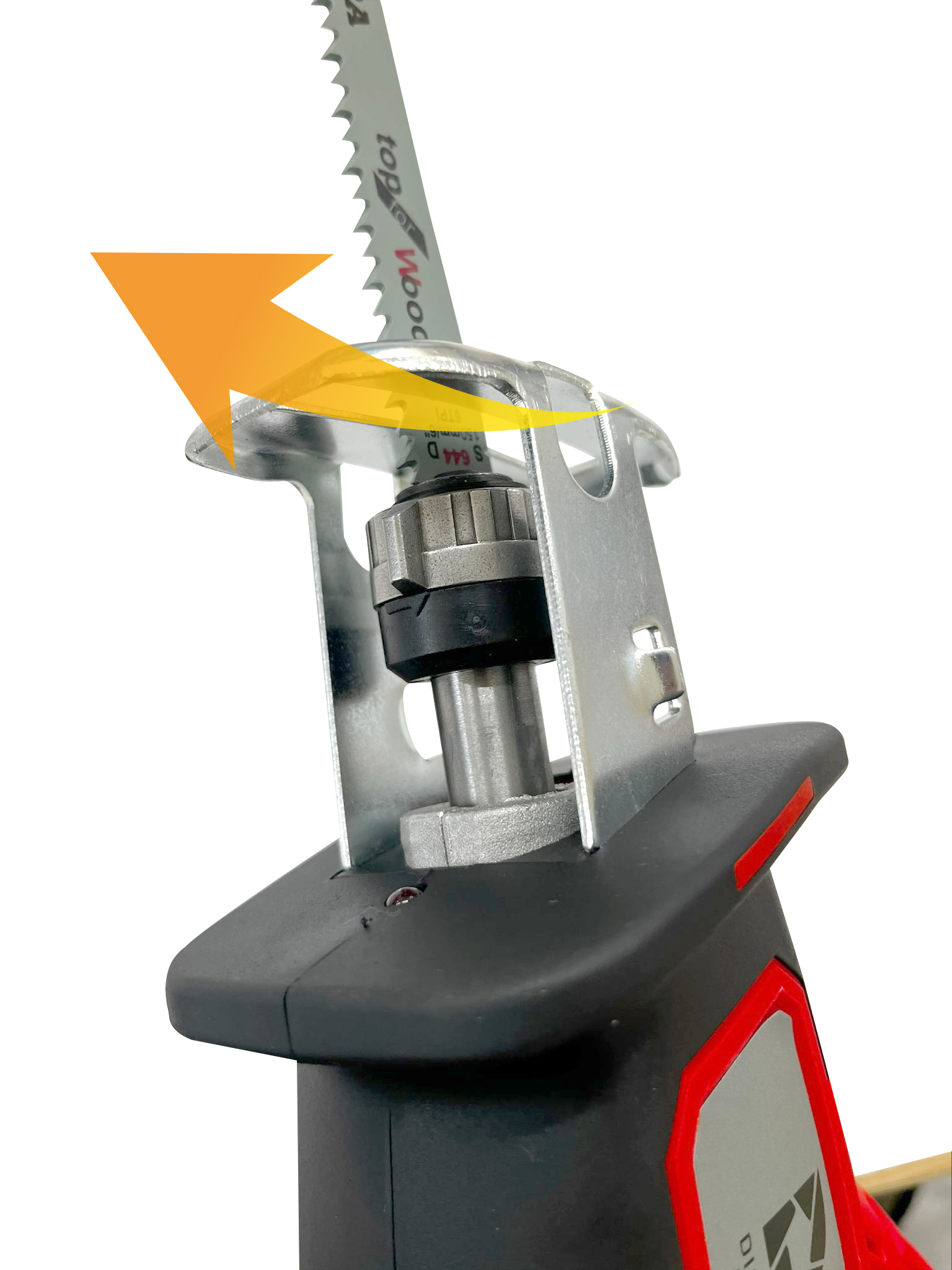 ①ブレードの取り付け部を矢印の方向へ回します