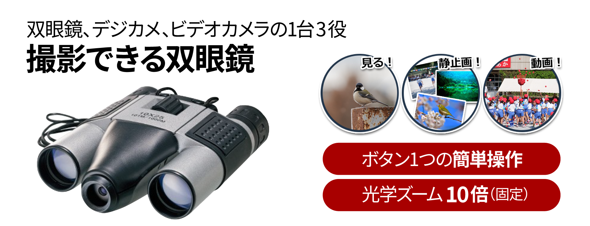 双眼鏡でみた風景や映像をそのまま保存できる双眼鏡です。ボタン1つで簡単に操作でき、感動の場面を逃しません。スポーツ観戦やバードウォッチング、お子様の運動会などにおすすめです。