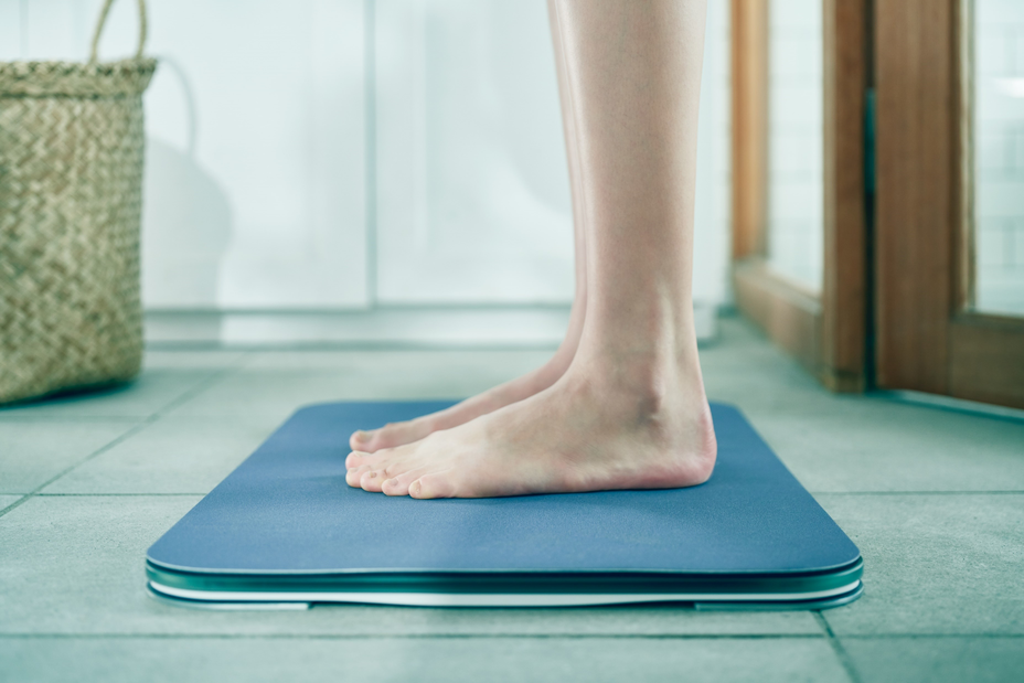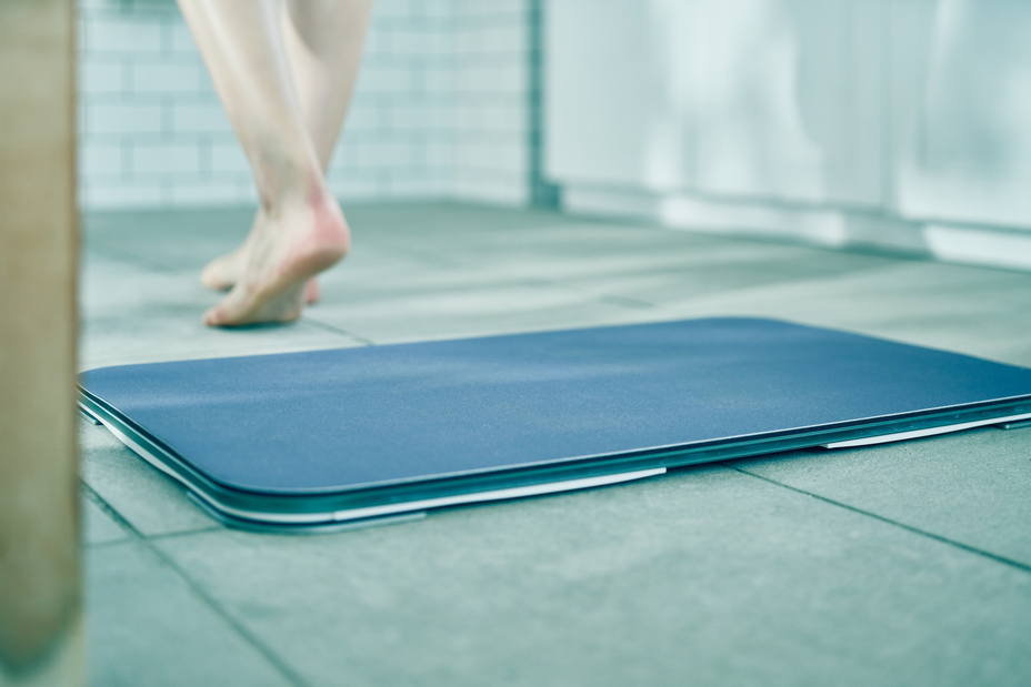 体重測定とバスマットの1台2役をこなす、スマートバスマットです。毎日のお風呂あがりに3秒乗るだけで、体重を管理できます。スマートフォンのアプリと連携し、簡単に記録、管理することができます。Wi-Fi接続のため毎回Bluetooth接続する必要もありません。USB充電方式なので電池不要、フル充電で半年間使用可能です。