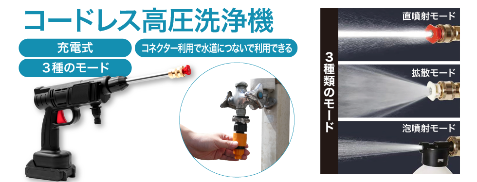3種類噴射モード(直噴射・拡散・泡噴射) |