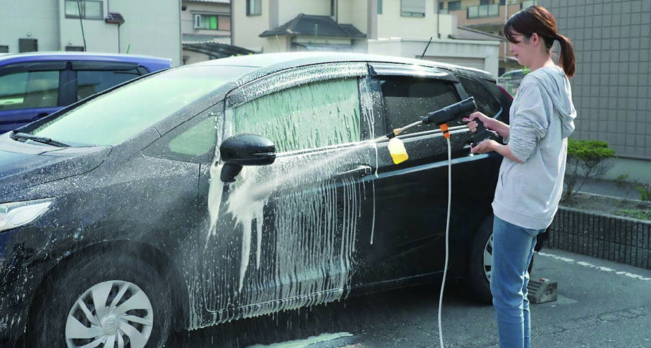 ボトルに洗剤を入れるだけで泡噴射が簡単にでき、洗車時にとても便利です。