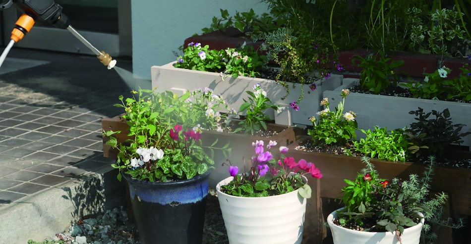 庭の手入れや外壁など、広範囲の洗浄に適しています。少ない水で効果的に洗浄が行なえます。