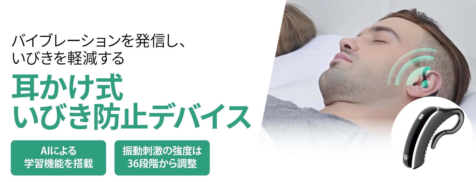 AI機能と骨伝導のダブルセンサーでいびきをキャッチし、振動刺激を発信