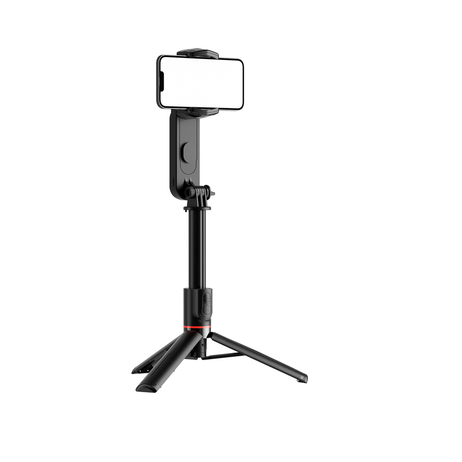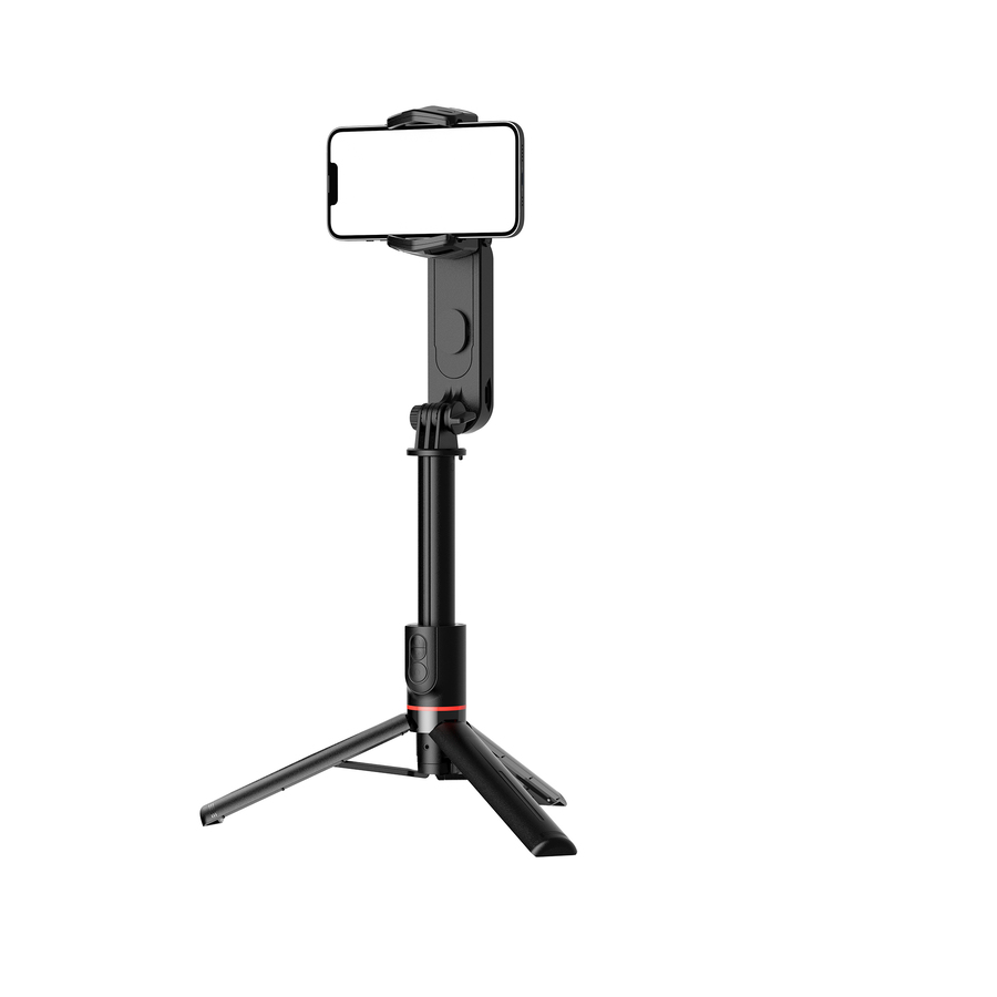 スマホを水平に保ち、揺れを抑えて撮影できるLEDライト付きのスタビライザーです。最長70cmまで伸ばして自撮り棒としてや、自立させて三脚として使用することもできます。折りたためば21cmになり、持ち運びにも便利です。